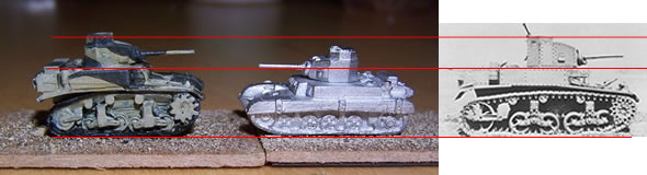 Updated the comparison photo to with a photo a real Stuart. The MF one looks a very good match height wise, although the cupola looks a little tall. The turret of the PD one is about the right height, it is the hull that is too small.