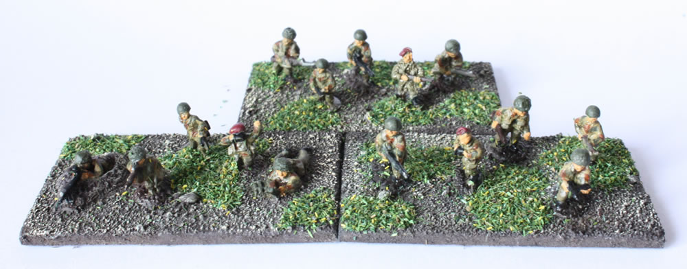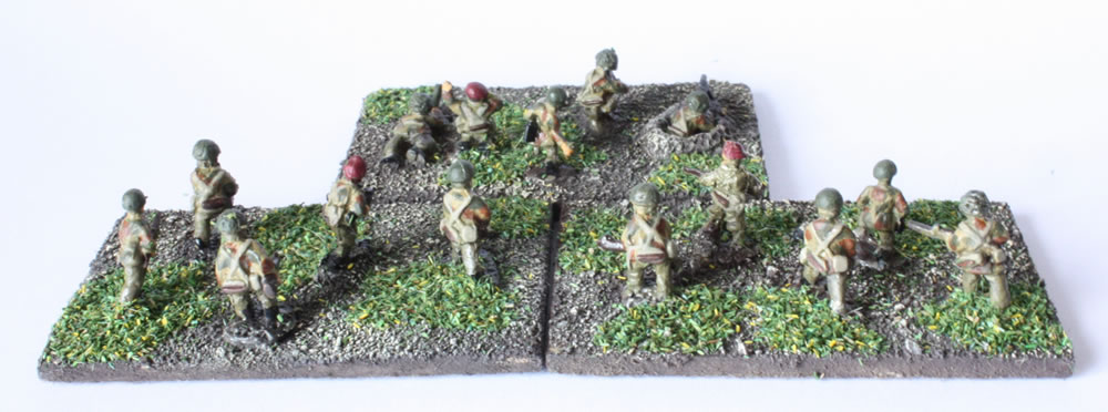 3 Parachute Battalions, each - 1 x HQ, 9 x Infantry, 1 x 3" Mortar, 1 x Vickers MMG (36 stands)
