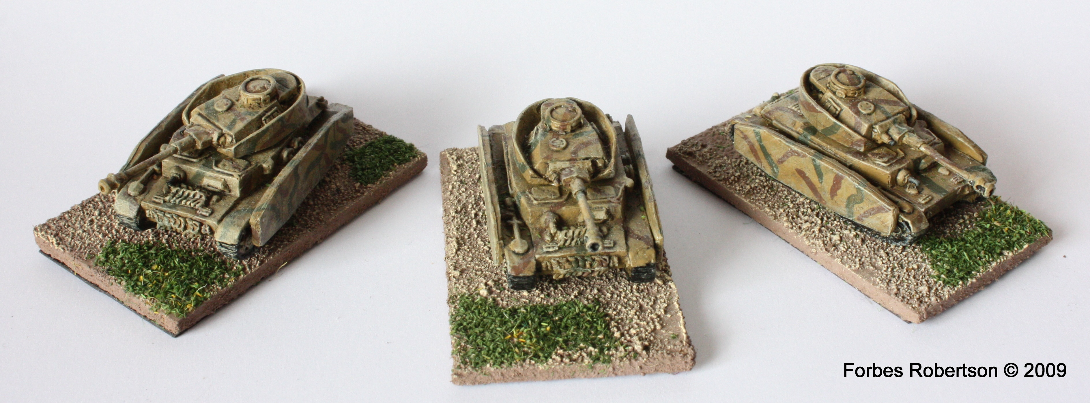 My german tank forces are based around the more common light war tanks. German tank ratios in 1944-5 were around 4 Pz IV to 4 Panthers to 1 Tiger, along with a high proportion of assult guns.